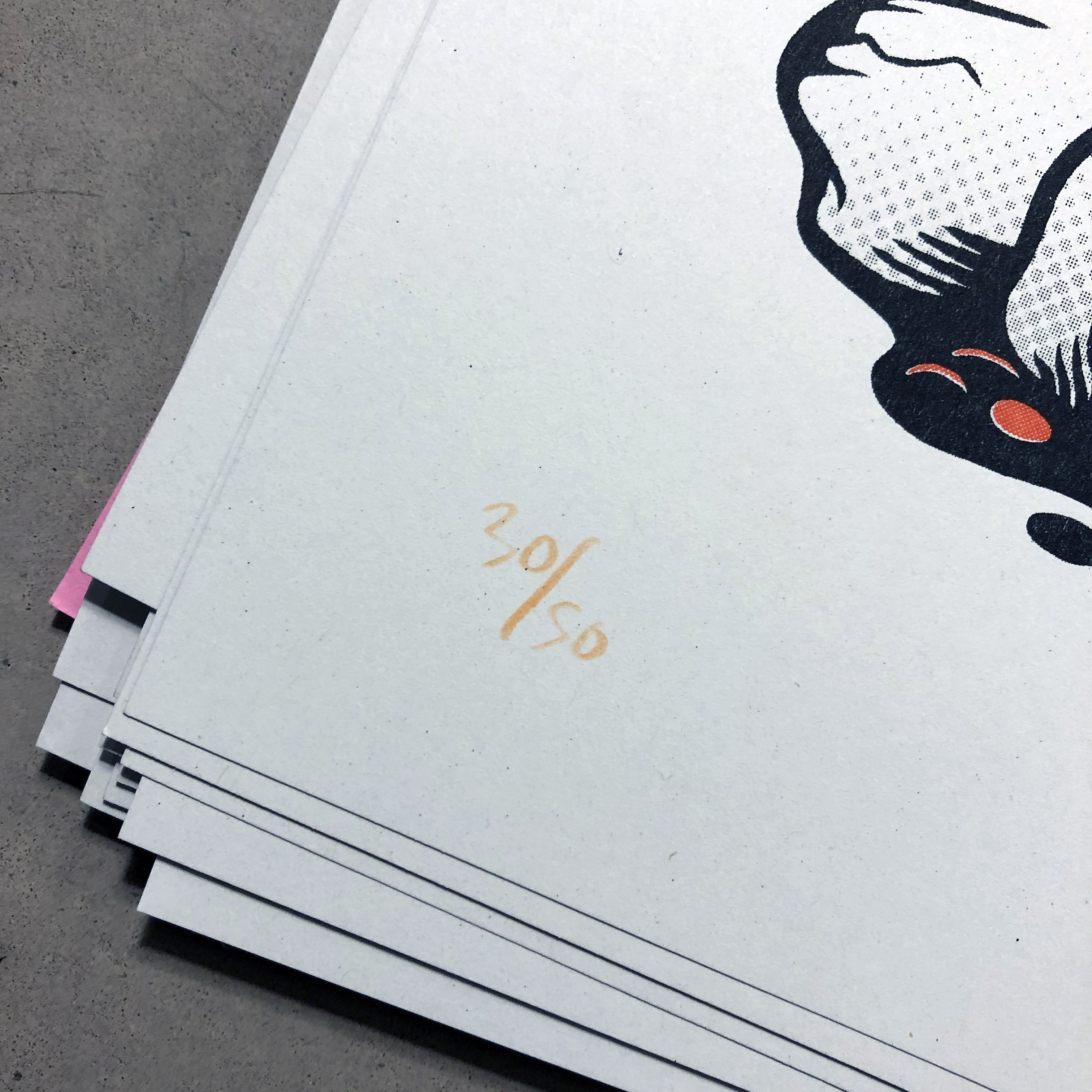 Wear a helmet ! A3 Risograph print on 190gsm Context Natural Paper.